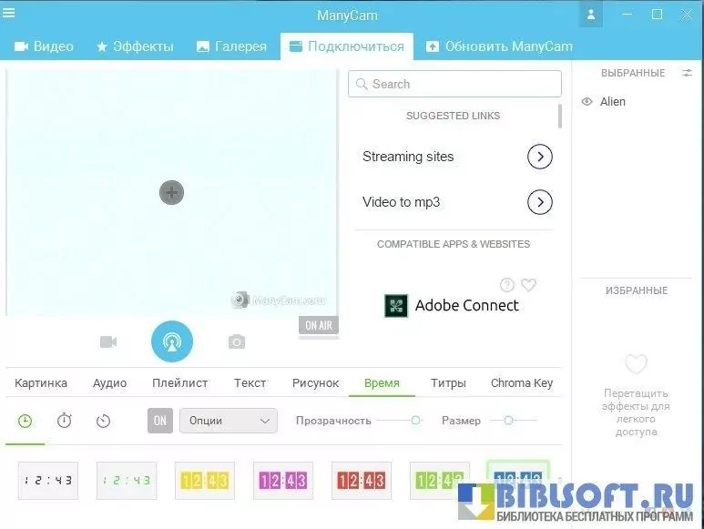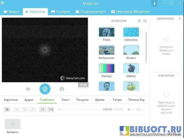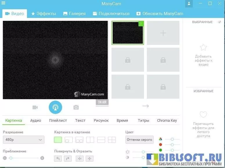 ManyCam позволяет сделать веб-трансляцию более увлекательной и интерактивной за счет добавления звуковых и видеоэффектов, возможности работать одновременно с несколькими приложениями и добавления элементов в видео в режиме реального времени.