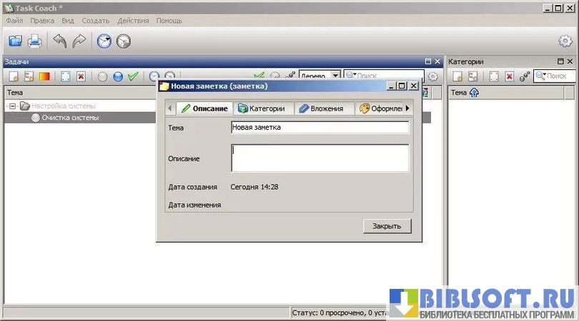 Task Coach - простая и в то же время гибкая программа для планирования задач и управления делами для Windows, которая позволяет организовывать проекты, разбивать их на подзадачи, отслеживать статусы и сроки без необходимости подключения к облаку или сторонним сервисам.