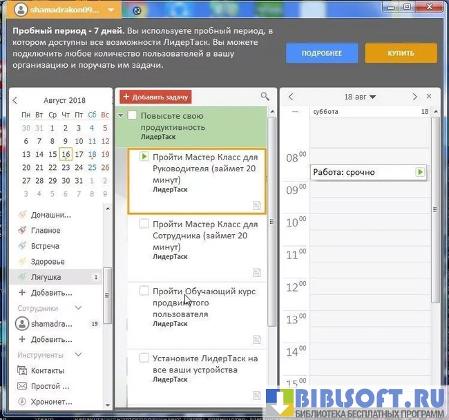 LeaderTask – полезная функциональная программа-органайзер для компьютеров Windows. Управляйте своим распорядком дня, планируйте события, создавайте заметки, определяйте задачи, устанавливайте напоминания о важных мероприятиях, распределяйте задания между друзьями и коллегами, прикрепляйте документы.