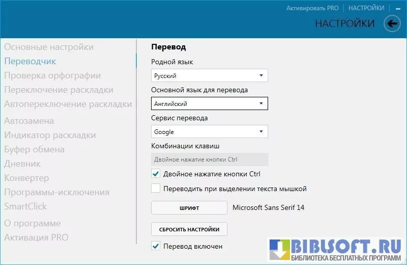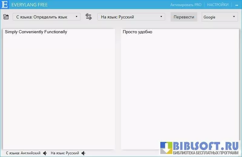 EveryLang – программа-переводчик для максимально возможной оптимизации работы с текстом. Утилита позволяет изменять и отслеживать язык ввода, проверять правописание, получать перевод с помощью возможностей Yandex, Google и Microsoft. Выделяйте необходимые сегменты текста и нажимайте необходимые сочетания клавиш при использовании функционала программы. Пользователь может заменить сочетания клавиш, заданные по умолчанию, на более удобные. Имеет наглядный удобный интерфейс. Окно для перевода включает два поля – для оригинала и переведенного текста. Предусмотрена возможность отслеживания истории копирования данных в буфер обмена.