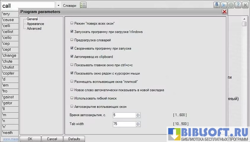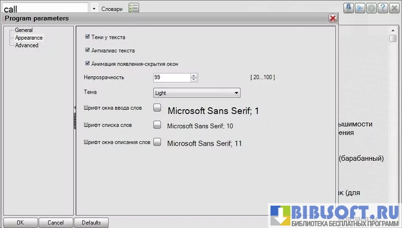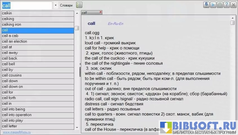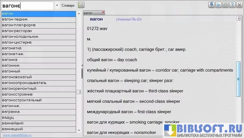 - Собственная база из нескольких десятков словарей и возможность подгрузки DSL-словарей;