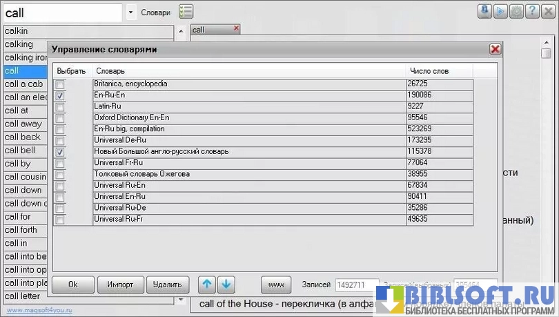 - Запоминает отмеченные пользователем словари и использует их в дальнейшей работе;