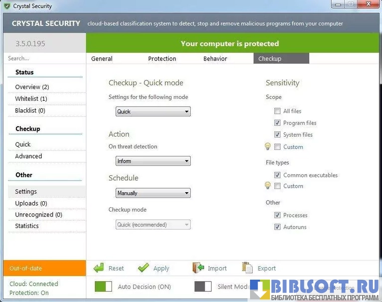 Crystal Security – компактная утилита для поиска и нейтрализации или блокировки вредоносных программ. Поддерживается всеми ОС Windows, кроме XP.