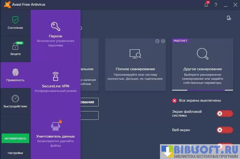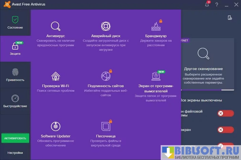 Avast Free Antivirus - бесплатный антивирусный продукт с интуитивным интерфейсом, ориентированный на базовую защиту персональных компьютеров: сканирование файлов в реальном времени, проверка загрузок и фильтрация веб-угроз при повседневном использовании. Встроенные модули объединяют сигнатурный и поведенческий анализ, позволяя блокировать известные вирусы и выявлять подозрительные действия приложений, а также предоставляют набор утилит для быстрого поиска уязвимостей в системе.