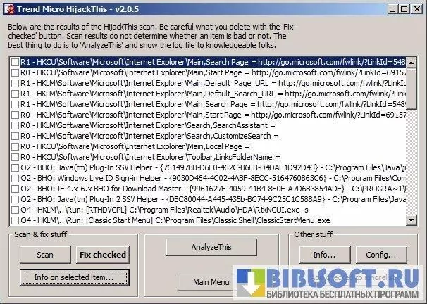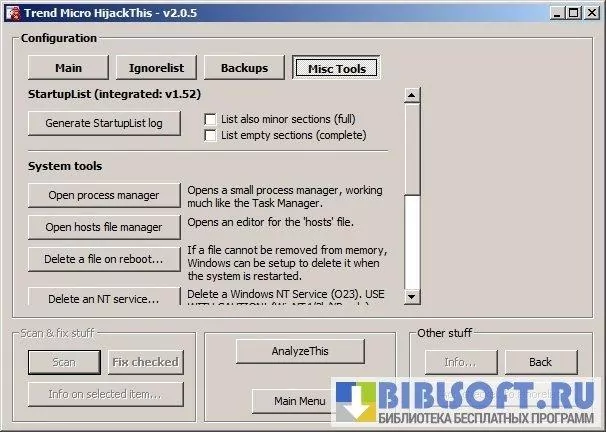 HijackThis – программа для удаления с компьютера вредоносных программ и защиты системы от их проникновения, а также ведения отчетов о безопасности системы.