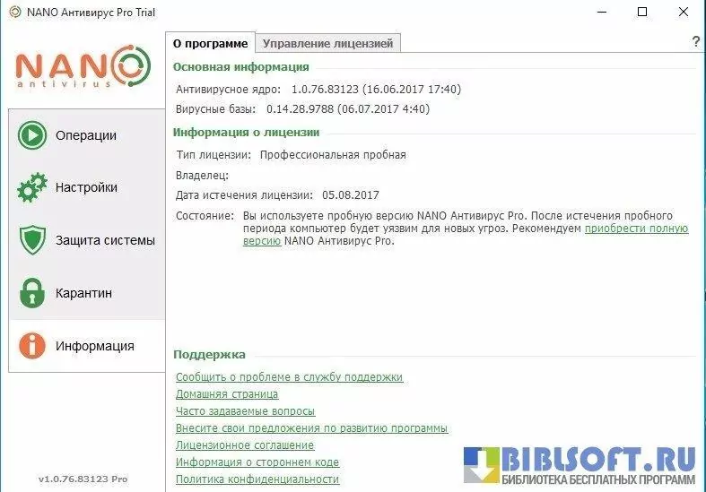 - легкое и полное управление установленным на компьютере антивирусном ПО NANO с быстрым получением информации о защите системы;