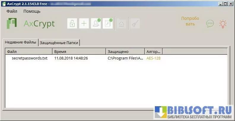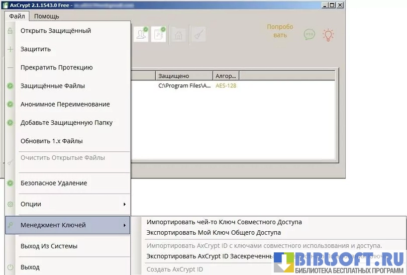 - «Расшаривает» указанные файлы/директории «доверенным» пользователям AxCrypt, при условии ввода ими соответствующего идентификатора;