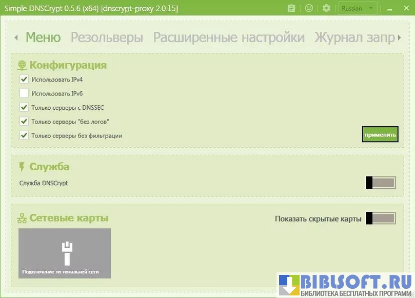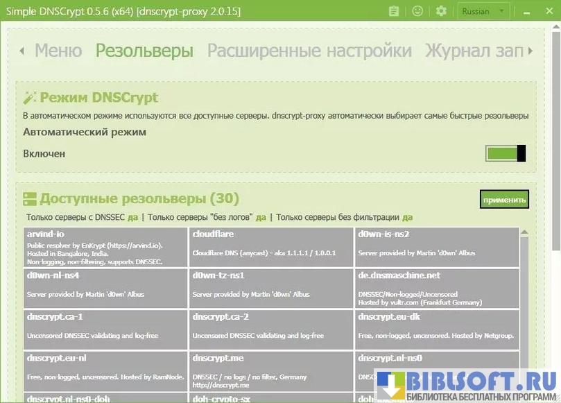 Simple DNSCrypt – прокси-менеджер для Windows со встроенной функцией двойного шифрования трафика. Предотвращает возможность несанкционированного получения доступа к, передаваемым/загружаемым пользователем, пакетам данных. Препятствует деанонимизацию пользовательской «машины» и системы.