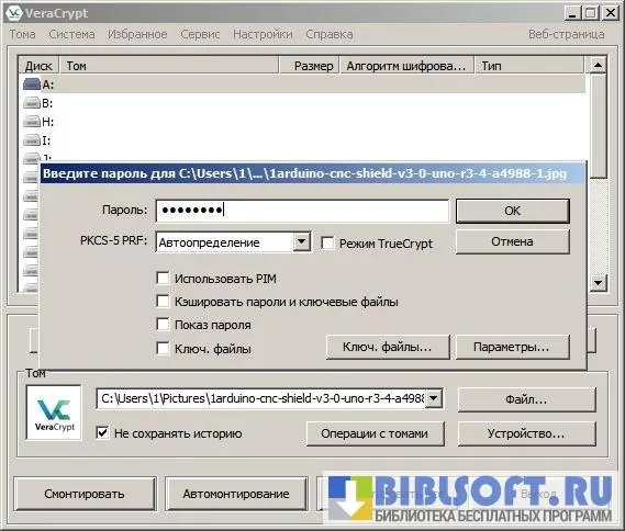 - Создание зашифрованных файлов-контейнеров произвольного размера, которые монтируются как виртуальные диски и получают букву в системе.