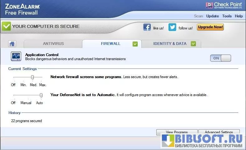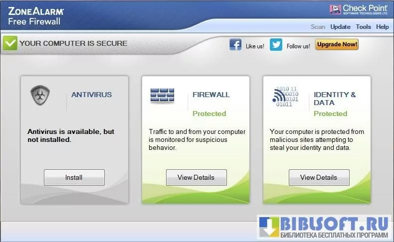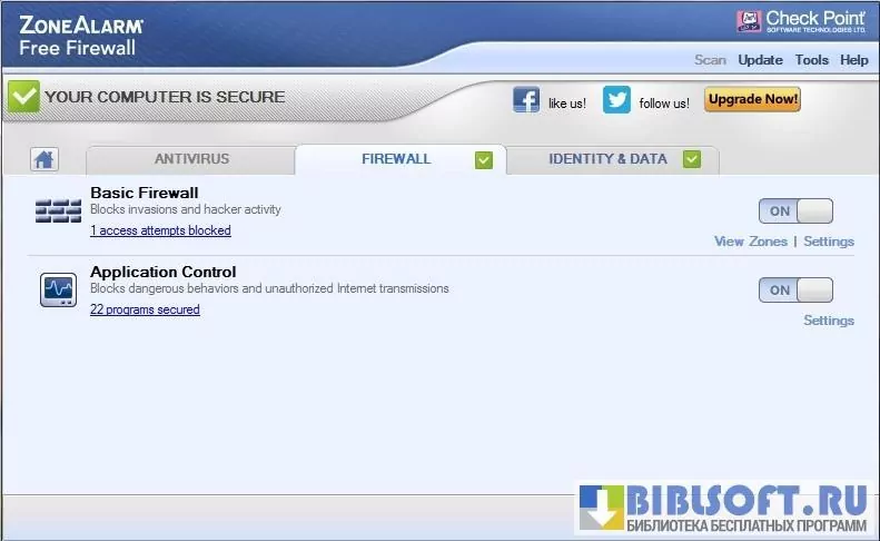 ZoneAlarm Free Firewall – многофункциональный брандмауэр для Windows. Объединяет в себе функциональную часть межсетевого экрана, утилиты для резервного копирования данных, сетевого анонимайзера и контроллера транзакций. Оснащен инструментами для сканирования и анализа сетевой активности используемых на ПК приложений.