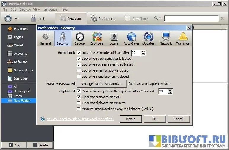 С 1Password пользователю необходимо запомнить всего один код доступа. Остальная важная информация защищена Мастером (Master Password), используемым для доступа в программу и известным только вам.