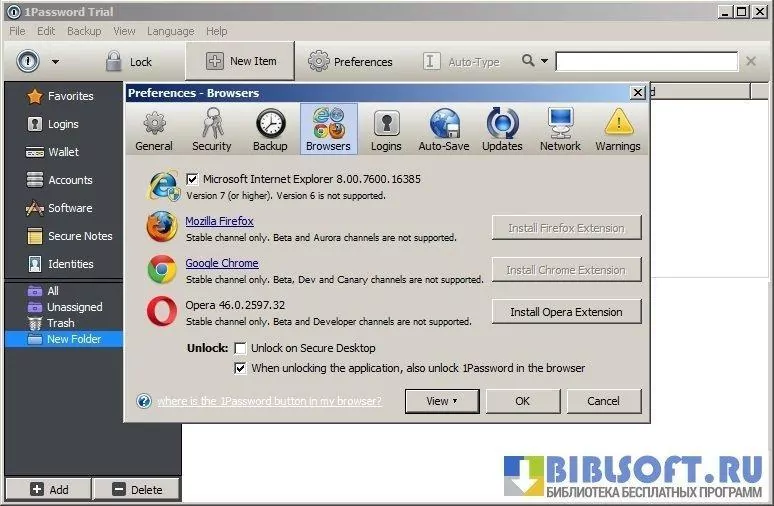 1Password позволяет сохранять пароли и входить в учетные записи на посещаемых сайтах простым щелчком мыши. Для использования расширения браузера, необходимо сначала установить приложение на ПК.