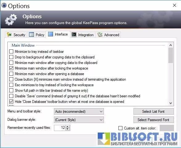 - использование алгоритмов с 256-ти битным ключом (Advanced Encryption Standard (AES / Rijndael) и Twofish) для шифрования файла паролей;