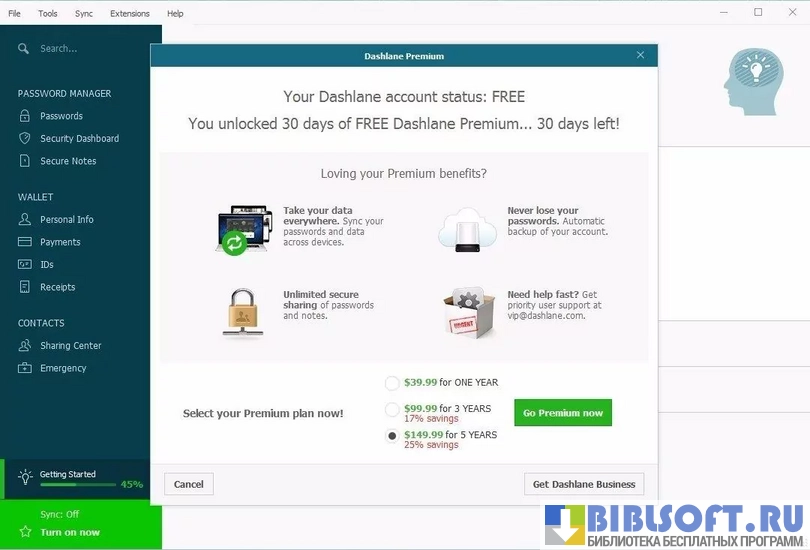 Dashlane для Windows – средство для хранения всех паролей в одном месте с защитой шифрованием.