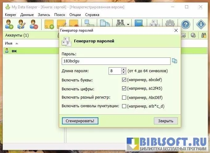 - с помощью встроенного генератора паролей можно создавать сложные пароли, которые невозможно угадать/подобрать;