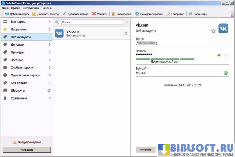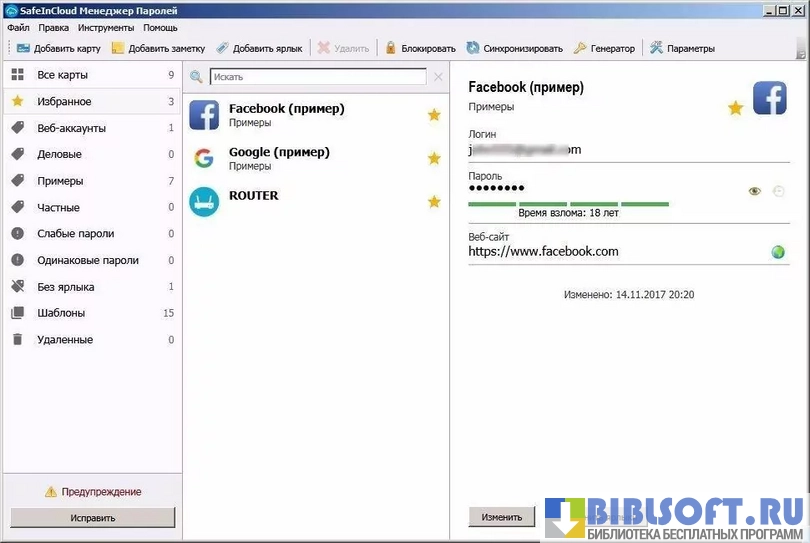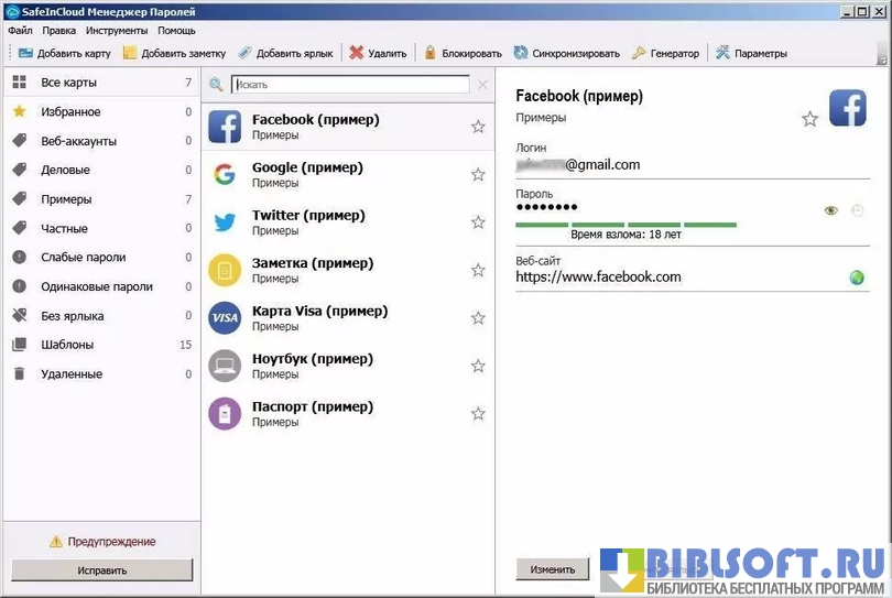SafeInCloud Password Manager – утилита для защищенного хранения паролей и личной информации. Программа обеспечивает не только хранение, но и удобную сортировку хранимых данных.
