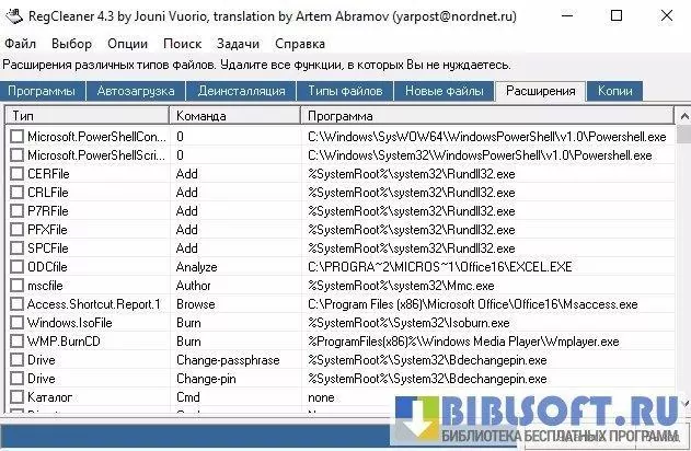 Утилита RegCleaner проводит сканирование реестра на наличие данных об удаленных файловых ассоциациях и программном обеспечении. Можно провести полный или частичный анализ пространства на диске с выдачей результата о расположении, типе и возрасте файлов.