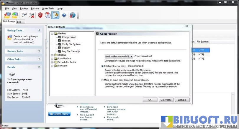 Macrium Reflect – сервисная утилита для Windows, создающая резервные копии указанных данных и/или образы жестких дисков на лету – без необходимости перезагрузки. Умеет производить многоуровневое сжатие резервируемой информации и создавать бэкапы по расписанию.