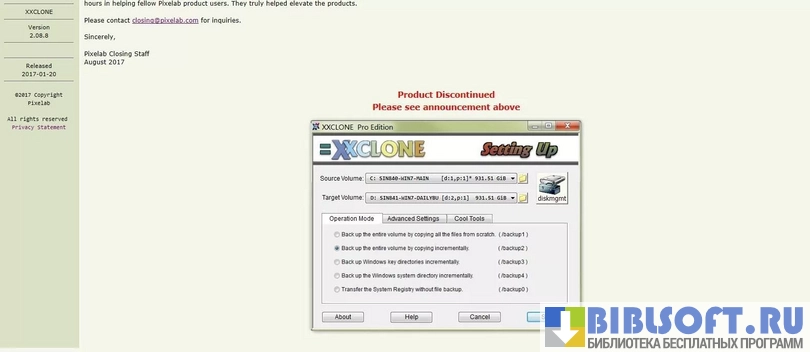 XXCLONE – сервисная утилита для Windows, позволяющая резервировать данные и создавать копии выбранных томов информационных носителей в один клик. Поддерживает возможность синхронизации с информационными носителями через IDE-/SCSI-/USB-протокол.