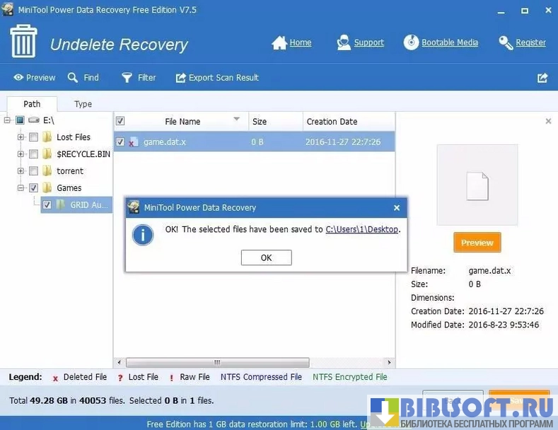 Утилита поставляется с набором инструментов для восстановления данных объемом до одного гигабайта. Она может реанимировать: