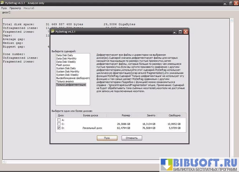 Функционал MyDefrag