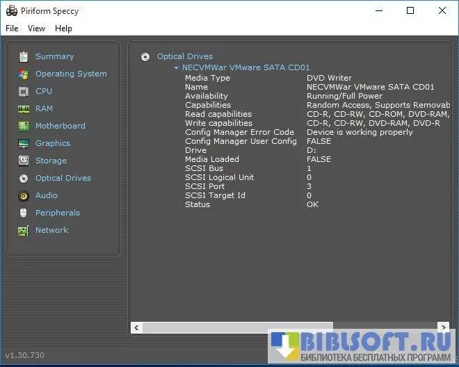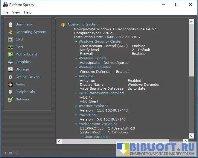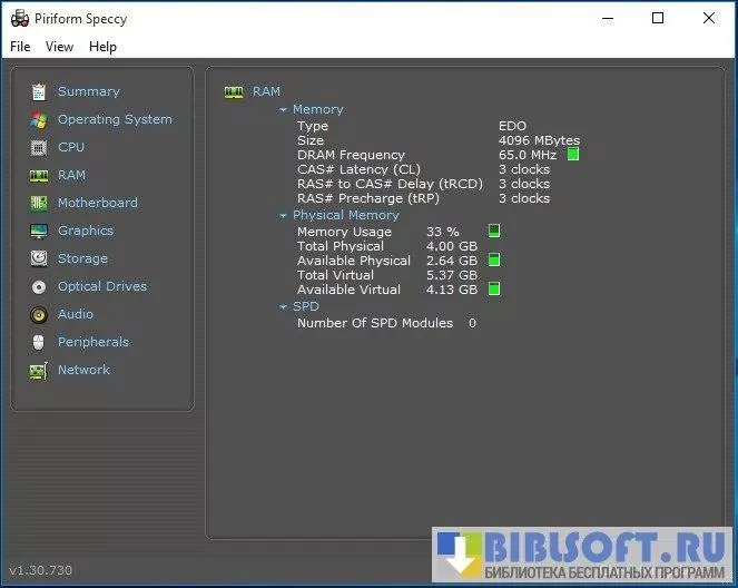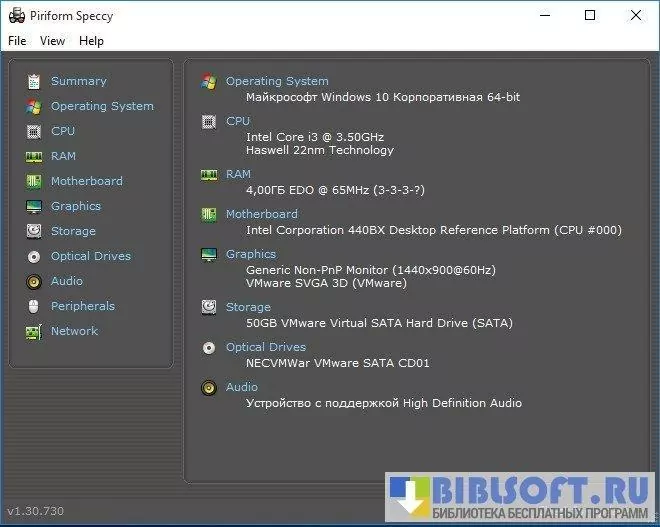 Speccy предоставляет данные об операционной системе и результаты сканирования аппаратной части компьютера. Пользователь получает всю информацию о процессоре, оперативной памяти, материнской плате, графическом адаптере, носителях информации, аудиокарте и других модулях, подключенных компьютеру.