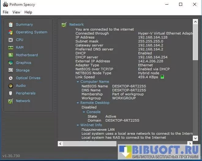 Speccy – небольшое приложение, способное работать без установки, предоставляющее подробную информацию о системе в целом и об отдельных компонентах компьютера.