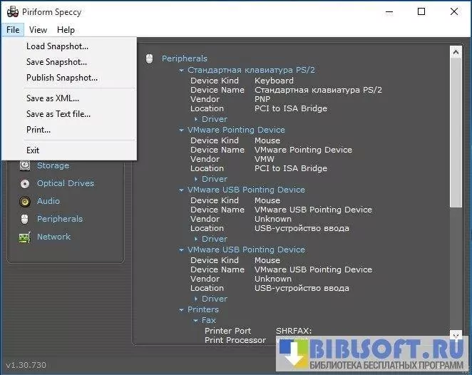 - анализ любых периферийных устройств, подключенных к компьютеру в момент запуска программы;