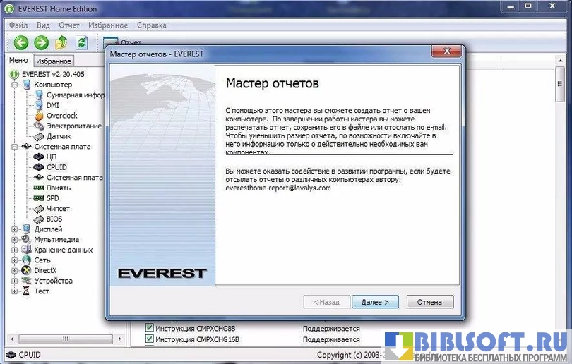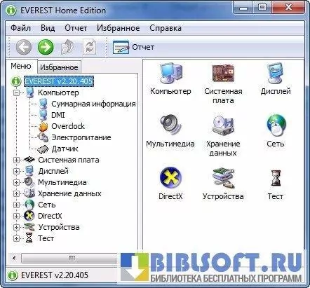Everest анализирует конфигурацию оборудования, передавая пользователю данные о: