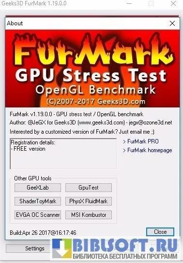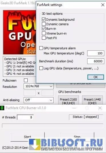 FurMark служит для проверки стабильности работы видеосистемы, совместимой с OpenGl, путем ее стресс тестирования (burn-in test).