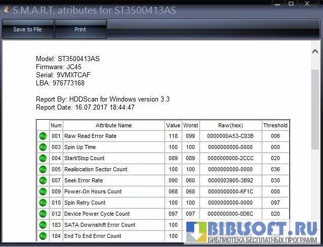 - Считывание и интерпретация S.M.A.R.T.-атрибутов с отображением значений и порогов, графическое представление изменений в динамике.
