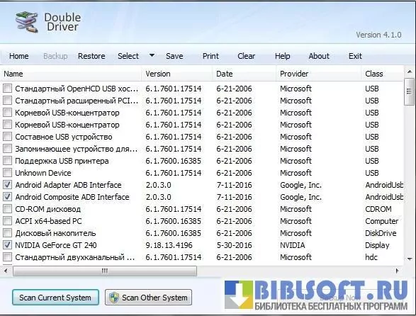 Double Driver - компактная портативная программа, являющаяся менеджером установленных драйверов в Windows-системе. Она позволяет удобно манипулировать списком драйверов, выполнять их резервное копирование с возможностью последующего восстановления. Сканирование выполняется с очень высокой скоростью. Результаты выводятся в удобном виде с возможностью установки фильтров по производителям и типам устройств. Удобный инструмент для восстановления неработоспособной системы.