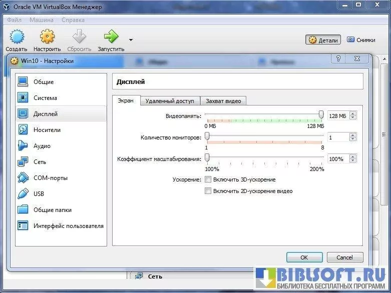 - возможность задействования внешних устройств, виртуальных дисков и аудиоустройств.