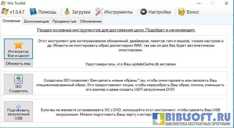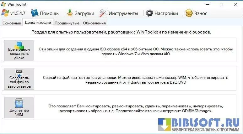 Инструменты, входящие в состав Win Toolkit, дают возможность модернизировать установочный образ операционной системы, добавляя в него аддоны, плагины, наборы тем, языковые пакеты, «тихие» установщики, обновления, пакеты драйверов и прочее. Также можно создавать собственные аддоны и надстройки.