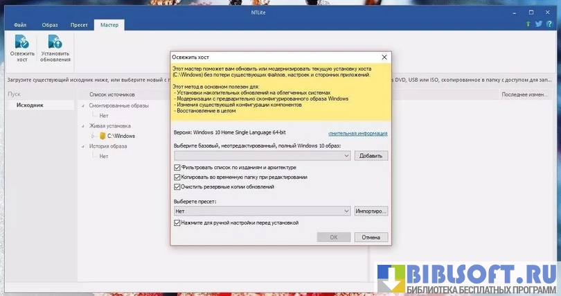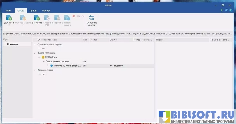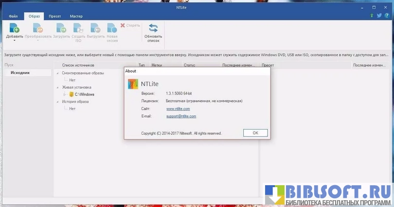 NTLite – инструмент для работы с образами Windows перед их записью на внешний носитель (флэшку/DVD диск). Позволяет разработать свой собственный дистрибутив операционной системы с заданными вами параметрами. Программа отлично подойдет для любителей экспериментировать с версиями ОС, выкладывать их на торрен-трекеры.