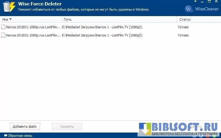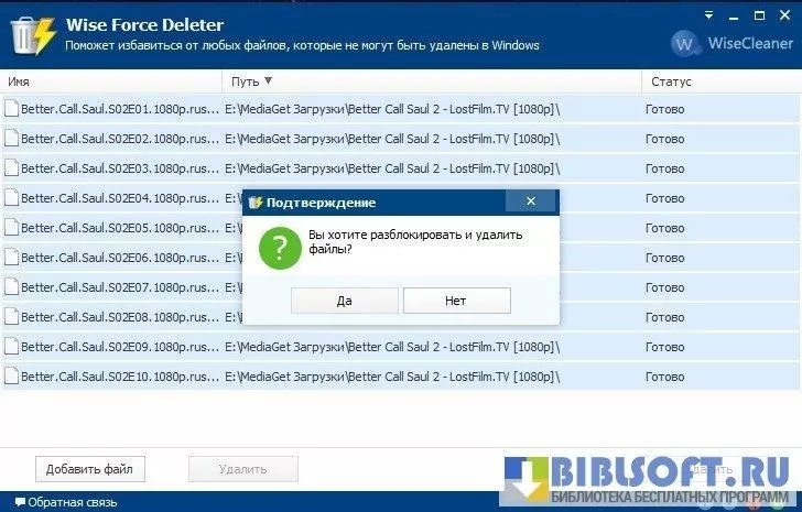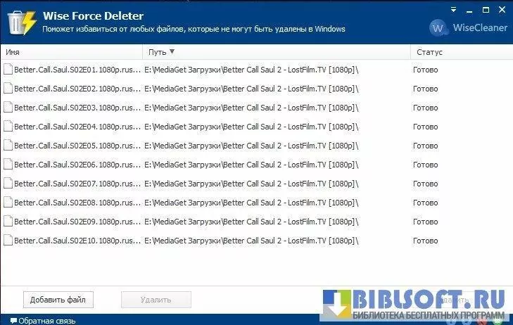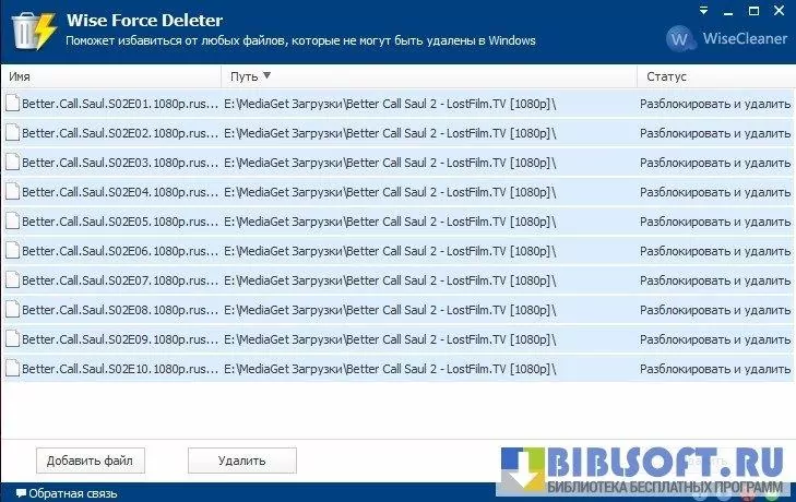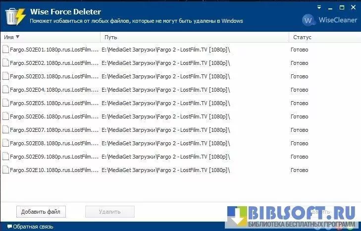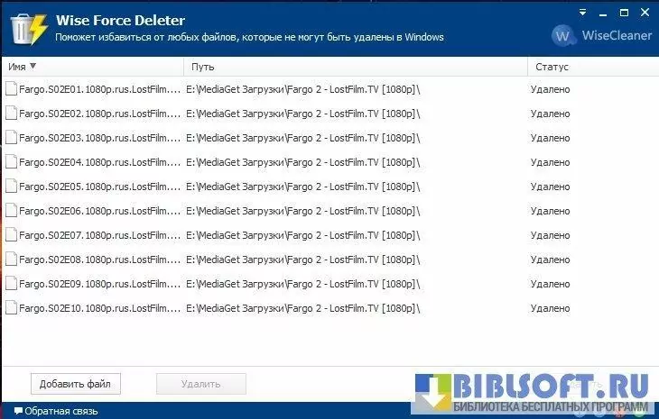 Wise Force Deleter – программа, способная удалить любой файл, даже тот, который пользователь не может удалить самостоятельно, получая соответствующие уведомления о блокировке файла или его занятости системным/пользовательским процессом.