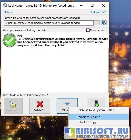 Независимо от причины блокировки файла LockHunter разблокирует его и даст возможность удалить, скопировать или переименовать.