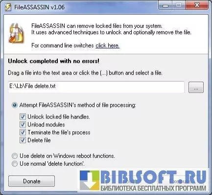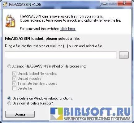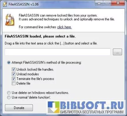 FileASSASSIN – программа, помогающая удалять заблокированные вредоносные файлы, недоступные для удаления стандартными способами. Вредоносное ПО защищено от удаления путем блокировки процесса в оперативной памяти или установки на него атрибута «системный». Все попытки удалить этот файл будут безрезультатными.