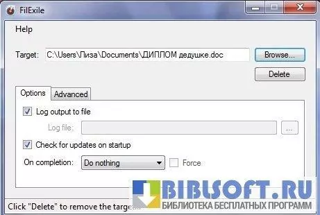 FilExile умеет обходить настройки безопасности системы, что позволяет ей обрабатывать даже важные системные каталоги. При этом удаление осуществляется очень быстро (скорость выполнения программой поставленной задачи зависит от размера удаляемого файла и процесса, которым он занят).
