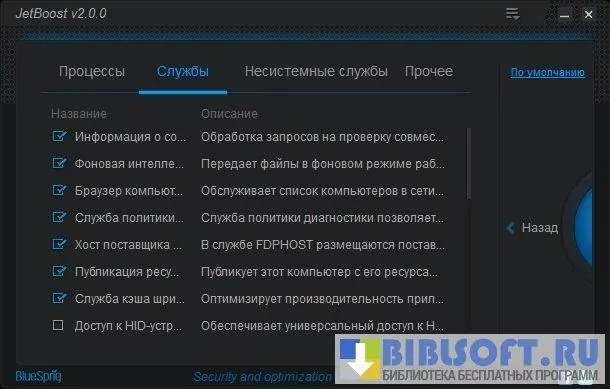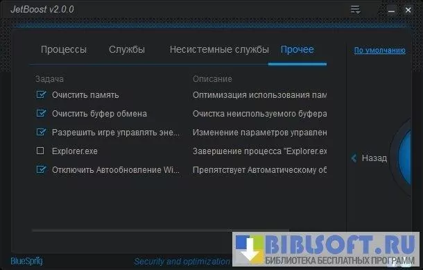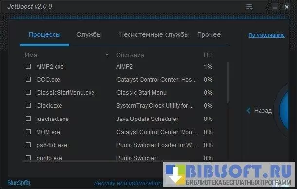JetBoost - утилита для оптимизации работы ПК путем выгрузки ненужных приложений из работы, расстановки приоритетов.