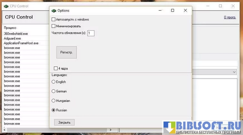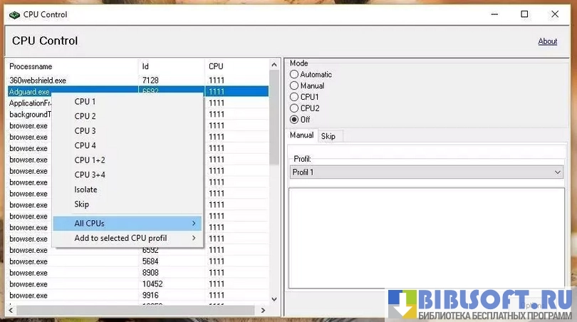 Приложение CPU-Control позволяет оптимизировать работу компьютерных систем на многоядерных процессорах.