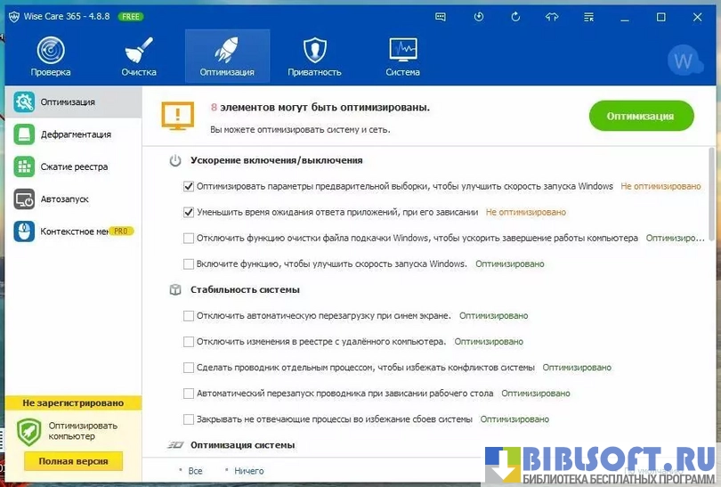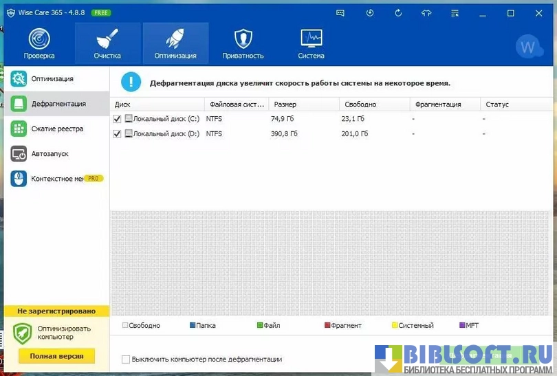 Wise Care 365 Free – многофункциональная сервисная утилита для Windows. Предназначена для оптимизации работы системы, очистки реестра от цифрового мусора и проведения дефрагментации, в т.ч. – низкоуровневой.