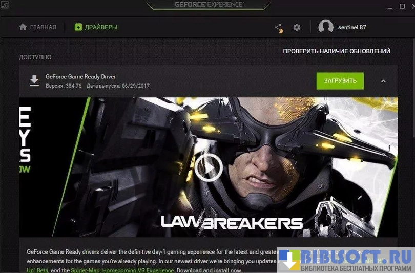 - автоматический поиск и обновление драйверов NVidia для видеокарт 400-й серии и выше;